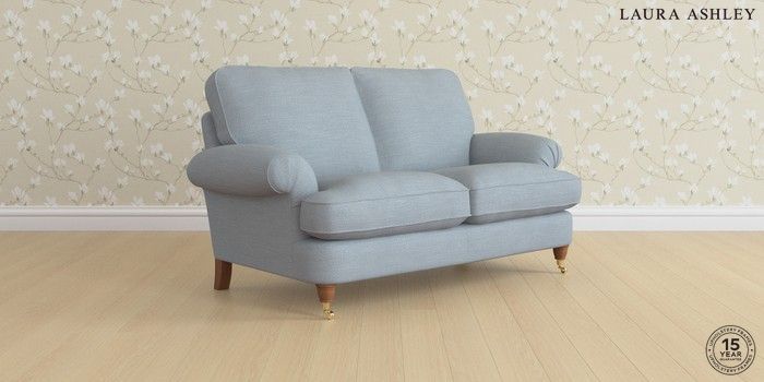 6.12.1 Buy Beaumaris by Laura Ashley 2 Seater Sofa Kinsham Seaspray Blue Low Brass Castor - Teak from the Next UK online shop Click here to use our accessible website