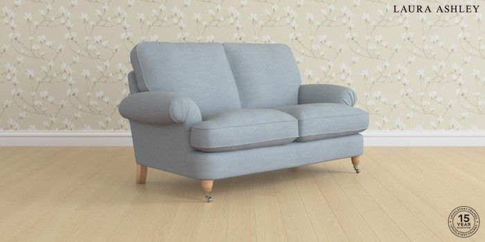 6.12.1 Buy Beaumaris by Laura Ashley 2 Seater Sofa Kinsham Seaspray Blue Low Chrome Castor - Light Oak from the Next UK online shop Click here to use our accessible website