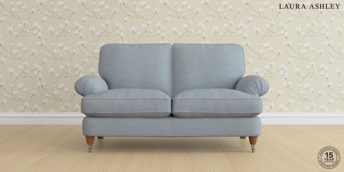 6.12.1 Buy Beaumaris by Laura Ashley 2 Seater Sofa Kinsham Seaspray Blue Low Chrome Castor - Teak from the Next UK online shop Click here to use our accessible website