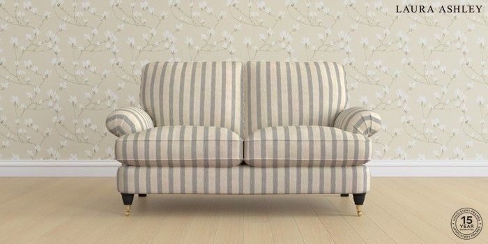 6.12.1 Buy Beaumaris by Laura Ashley 2 Seater Sofa Kinsham Stripe Seaspray Blue Low Brass Castor - Black from the Next UK online shop Click here to use our accessible website