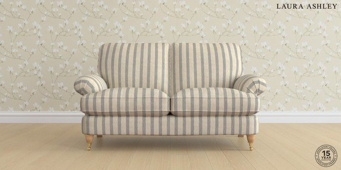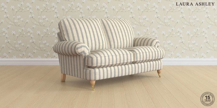 6.12.1 Buy Beaumaris by Laura Ashley 2 Seater Sofa Kinsham Stripe Seaspray Blue Low Brass Castor - Light Oak from the Next UK online shop Click here to use our accessible website