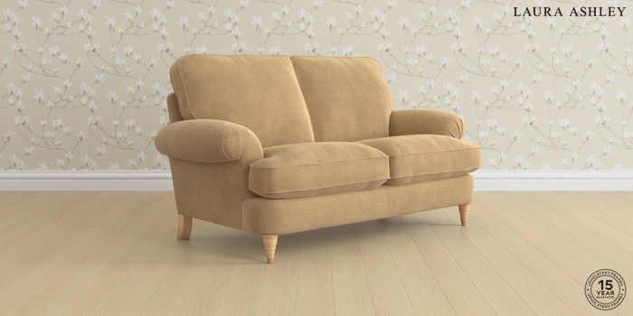 6.12.1 Buy Beaumaris by Laura Ashley 2 Seater Sofa Lundar Chenille Caramel Natural Low Turned - Light Oak from the Next UK online shop Click here to use our accessible website