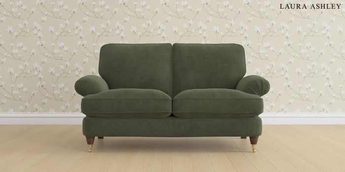 6.12.1 Buy Beaumaris by Laura Ashley 2 Seater Sofa Lundar Chenille Ivy Green Low Brass Castor - Chestnut from the Next UK online shop Click here to use our accessible website
