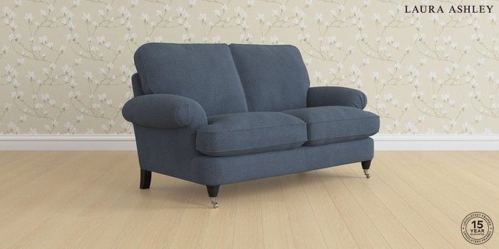 6.12.1 Buy Beaumaris by Laura Ashley 2 Seater Sofa Lundar Chenille Navy Blue Low Chrome Castor - Black from the Next UK online shop Click here to use our accessible website