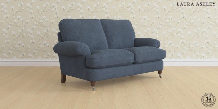 6.12.1 Buy Beaumaris by Laura Ashley 2 Seater Sofa Lundar Chenille Navy Blue Low Chrome Castor - Chestnut from the Next UK online shop Click here to use our accessible website