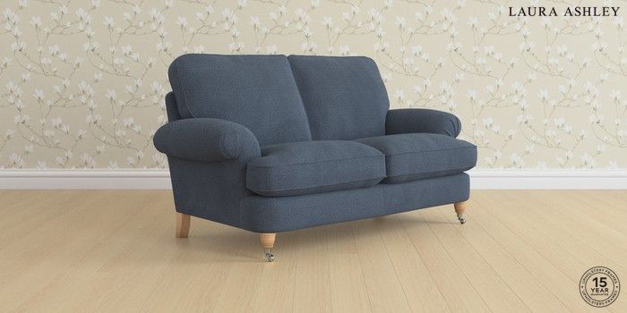 6.12.1 Buy Beaumaris by Laura Ashley 2 Seater Sofa Lundar Chenille Navy Blue Low Chrome Castor - Light Oak from the Next UK online shop Click here to use our accessible website