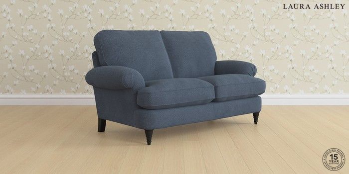 6.12.1 Buy Beaumaris by Laura Ashley 2 Seater Sofa Lundar Chenille Navy Blue Low Turned - Black from the Next UK online shop Click here to use our accessible website
