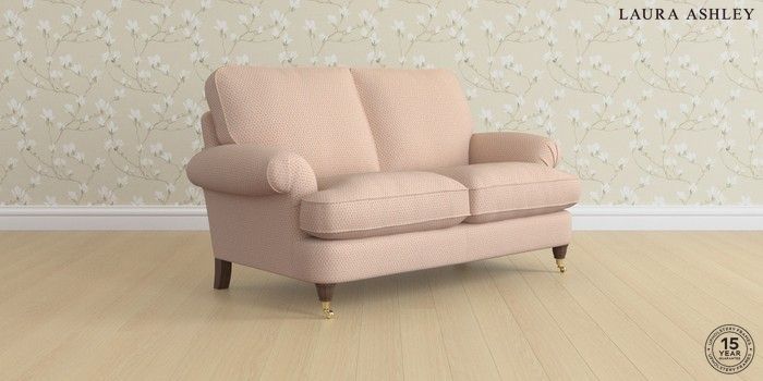 6.12.1 Buy Beaumaris by Laura Ashley 2 Seater Sofa Melbreak Geo Chalk Pink Low Brass Castor - Chestnut from the Next UK online shop Click here to use our accessible website