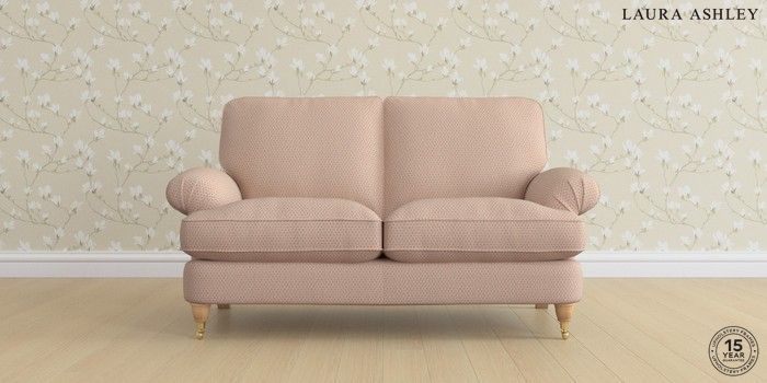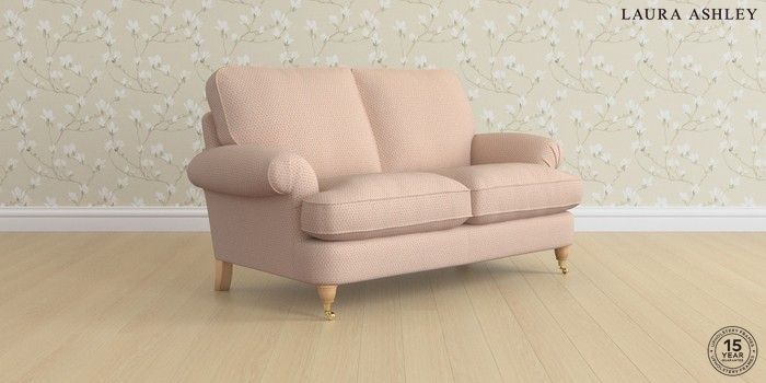 6.12.1 Buy Beaumaris by Laura Ashley 2 Seater Sofa Melbreak Geo Chalk Pink Low Brass Castor - Light Oak from the Next UK online shop Click here to use our accessible website