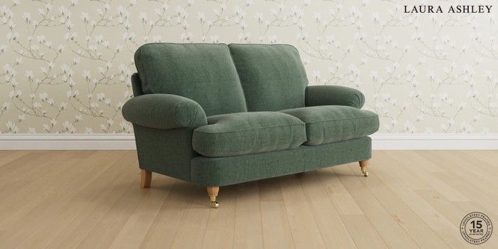 6.12.1 Buy Beaumaris by Laura Ashley 2 Seater Sofa Nantmor Fern Green Low Brass Castor - Light Oak from the Next UK online shop Click here to use our accessible website