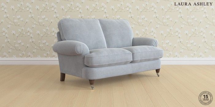 6.12.1 Buy Beaumaris by Laura Ashley 2 Seater Sofa Peyton Powder Blue Low Chrome Castor - Chestnut from the Next UK online shop Click here to use our accessible website
