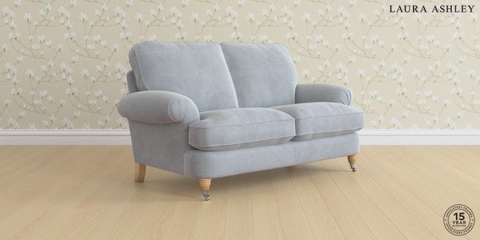 6.12.1 Buy Beaumaris by Laura Ashley 2 Seater Sofa Peyton Powder Blue Low Chrome Castor - Light Oak from the Next UK online shop Click here to use our accessible website