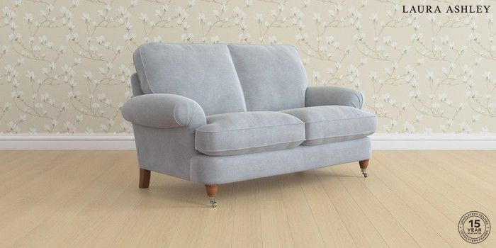 6.12.1 Buy Beaumaris by Laura Ashley 2 Seater Sofa Peyton Powder Blue Low Chrome Castor - Teak from the Next UK online shop Click here to use our accessible website