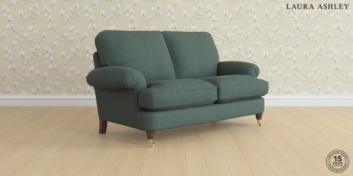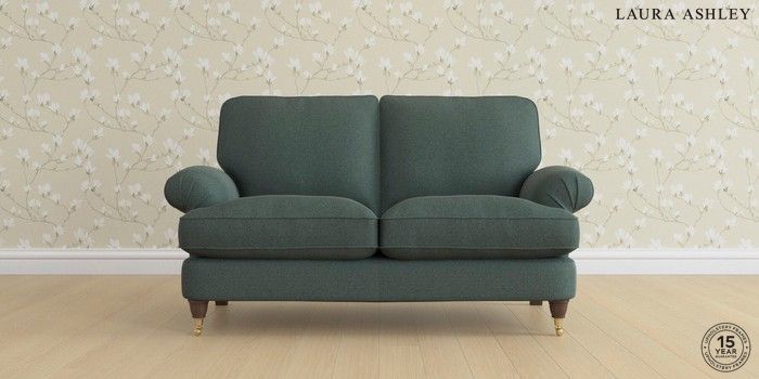 6.12.1 Buy Beaumaris by Laura Ashley 2 Seater Sofa Wooton Forest Green Low Brass Castor - Chestnut from the Next UK online shop Click here to use our accessible website
