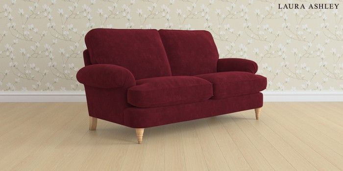 6.12.13 Buy Beaumaris by Laura Ashley 3 Seater Small Sofa Alwyn Velvet Burgundy Red Low Turned - Light Oak from the Next UK online shop Click here to use our accessible website