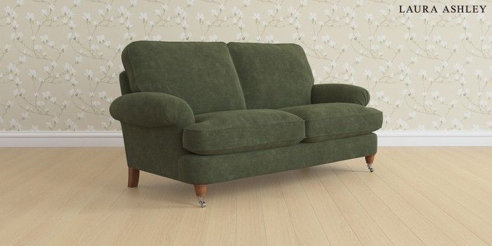 6.12.1 Buy Beaumaris by Laura Ashley 3 Seater Small Sofa Alwyn Velvet Ivy Green Low Chrome Castor - Teak from the Next UK online shop Click here to use our accessible website