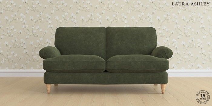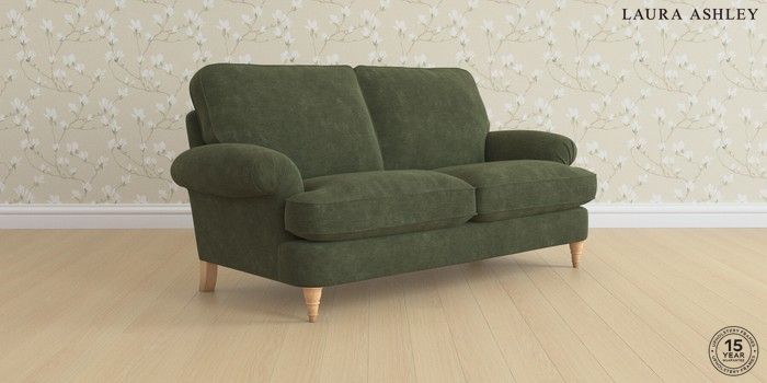 6.12.13 Buy Beaumaris by Laura Ashley 3 Seater Small Sofa Alwyn Velvet Ivy Green Low Turned - Light Oak from the Next UK online shop Click here to use our accessible website