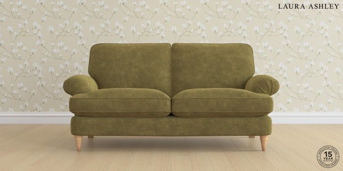 6.12.1 Buy Beaumaris by Laura Ashley 3 Seater Small Sofa Alwyn Velvet Olive Green Low Turned - Light Oak from the Next UK online shop Click here to use our accessible website