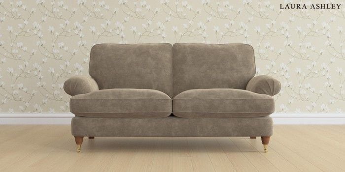 6.12.1 Buy Beaumaris by Laura Ashley 3 Seater Small Sofa Alwyn Velvet Truffle Natural Low Brass Castor - Teak from the Next UK online shop Click here to use our accessible website