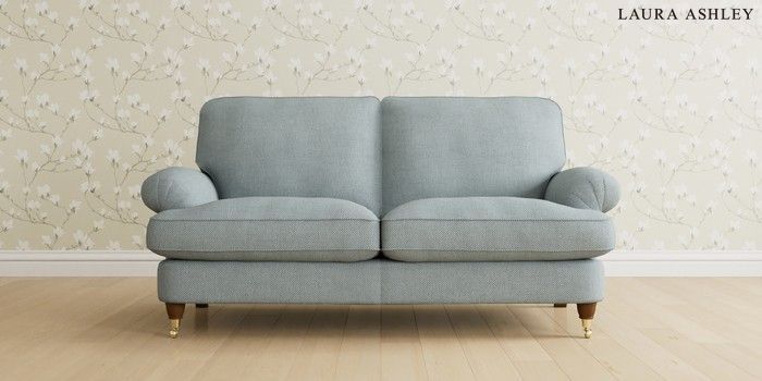 6.12.1 Buy Beaumaris by Laura Ashley 3 Seater Small Sofa Anneliese Seaspray Blue Low Brass Castor - Teak from the Next UK online shop Click here to use our accessible website