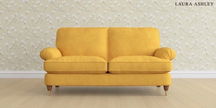 6.12.13 Buy Beaumaris by Laura Ashley 3 Seater Small Sofa Bainton Ochre Yellow Low Brass Castor - Teak from the Next UK online shop Click here to use our accessible website