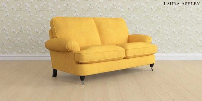 6.12.1 Buy Beaumaris by Laura Ashley 3 Seater Small Sofa Bainton Ochre Yellow Low Chrome Castor - Black from the Next UK online shop Click here to use our accessible website
