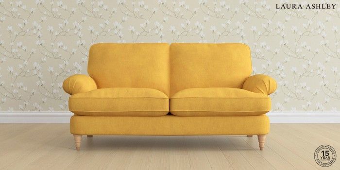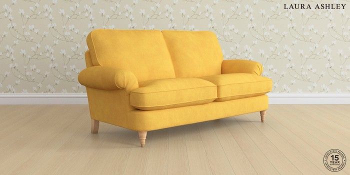 6.12.1 Buy Beaumaris by Laura Ashley 3 Seater Small Sofa Bainton Ochre Yellow Low Turned - Light Oak from the Next UK online shop Click here to use our accessible website