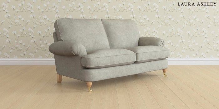6.12.1 Buy Beaumaris by Laura Ashley 3 Seater Small Sofa Bainton Pale Steel Grey Low Brass Castor - Light Oak from the Next UK online shop Click here to use our accessible website