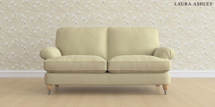 6.12.13 Buy Beaumaris by Laura Ashley 3 Seater Small Sofa Chequers Hedgerow Green Low Chrome Castor - Light Oak from the Next UK online shop Click here to use our accessible website
