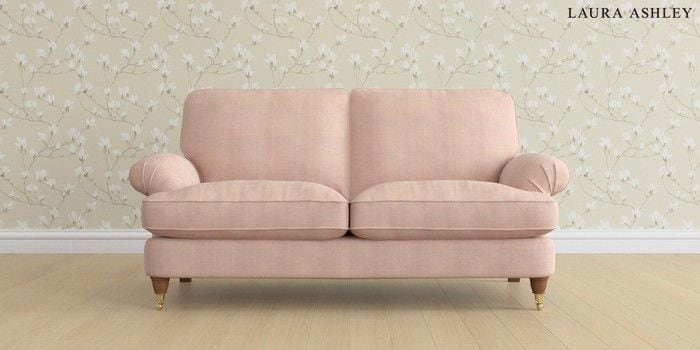 6.12.1 Buy Beaumaris by Laura Ashley 3 Seater Small Sofa Edwin Chenille Blush Pink Low Brass Castor - Teak from the Next UK online shop Click here to use our accessible website