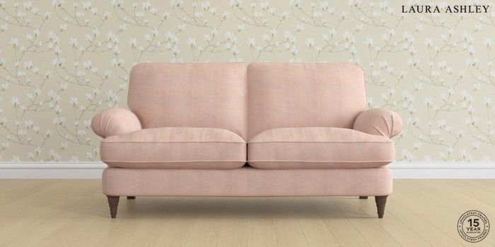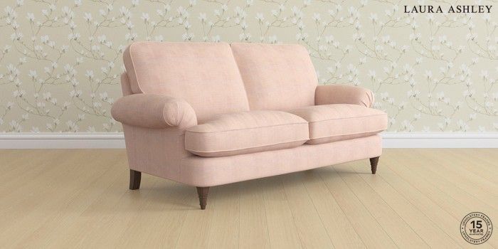 6.12.1 Buy Beaumaris by Laura Ashley 3 Seater Small Sofa Edwin Chenille Blush Pink Low Turned - Chestnut from the Next UK online shop Click here to use our accessible website