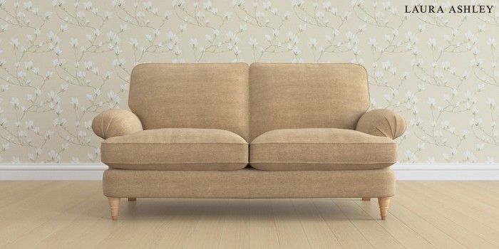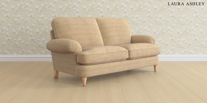 6.12.1 Buy Beaumaris by Laura Ashley 3 Seater Small Sofa Edwin Chenille Gold Natural Low Turned - Light Oak from the Next UK online shop Click here to use our accessible website