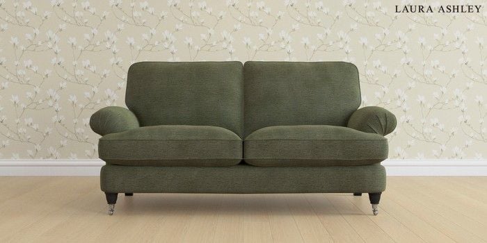 6.12.13 Buy Beaumaris by Laura Ashley 3 Seater Small Sofa Edwin Chenille Hedgerow Green Low Chrome Castor - Black from the Next UK online shop Click here to use our accessible website