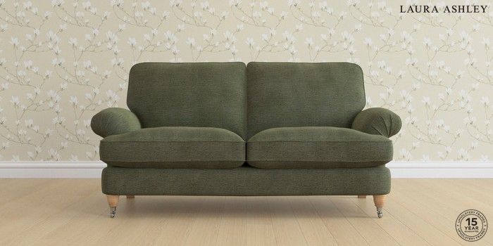 6.12.13 Buy Beaumaris by Laura Ashley 3 Seater Small Sofa Edwin Chenille Hedgerow Green Low Chrome Castor - Light Oak from the Next UK online shop Click here to use our accessible website