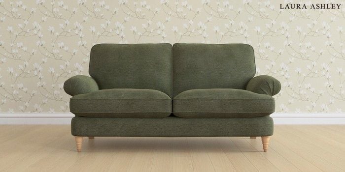 6.12.13 Buy Beaumaris by Laura Ashley 3 Seater Small Sofa Edwin Chenille Hedgerow Green Low Turned - Light Oak from the Next UK online shop Click here to use our accessible website