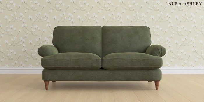 6.12.13 Buy Beaumaris by Laura Ashley 3 Seater Small Sofa Edwin Chenille Hedgerow Green Low Turned - Teak from the Next UK online shop Click here to use our accessible website