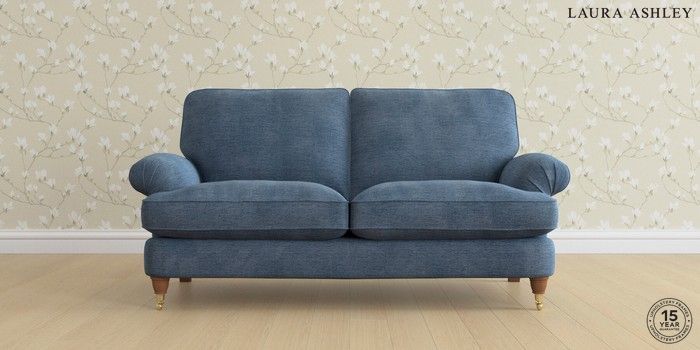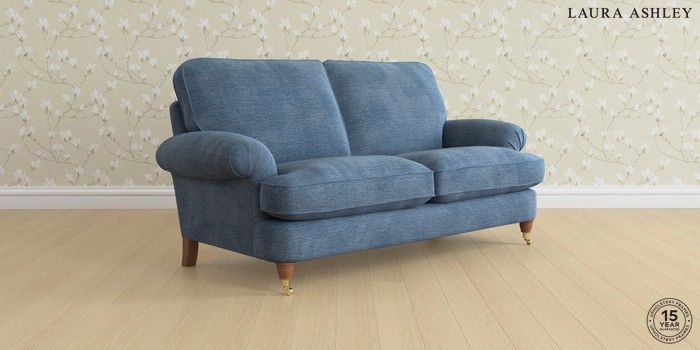 6.12.1 Buy Beaumaris by Laura Ashley 3 Seater Small Sofa Edwin Chenille Seaspray Blue Low Brass Castor - Teak from the Next UK online shop Click here to use our accessible website