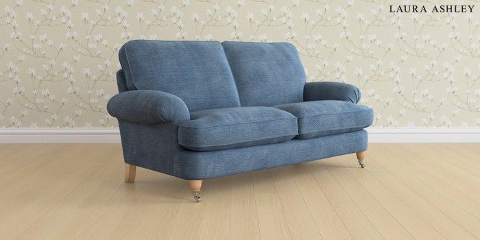 6.12.1 Buy Beaumaris by Laura Ashley 3 Seater Small Sofa Edwin Chenille Seaspray Blue Low Chrome Castor - Light Oak from the Next UK online shop Click here to use our accessible website
