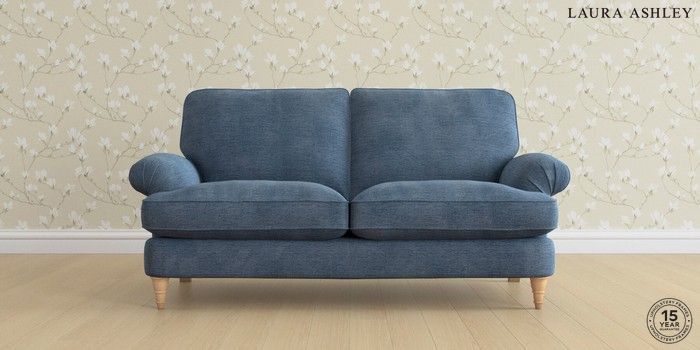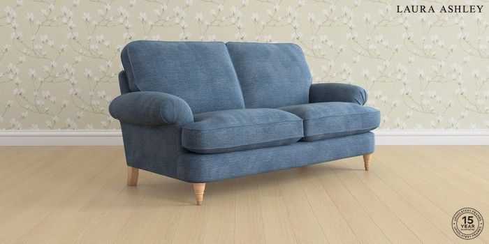 6.12.1 Buy Beaumaris by Laura Ashley 3 Seater Small Sofa Edwin Chenille Seaspray Blue Low Turned - Light Oak from the Next UK online shop Click here to use our accessible website