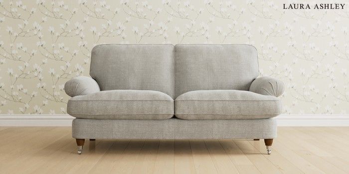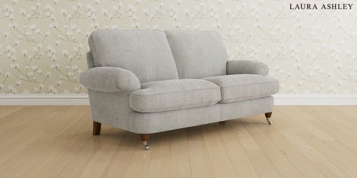 6.12.1 Buy Beaumaris by Laura Ashley 3 Seater Small Sofa Edwin Chenille Silver Grey Low Chrome Castor - Teak from the Next UK online shop Click here to use our accessible website