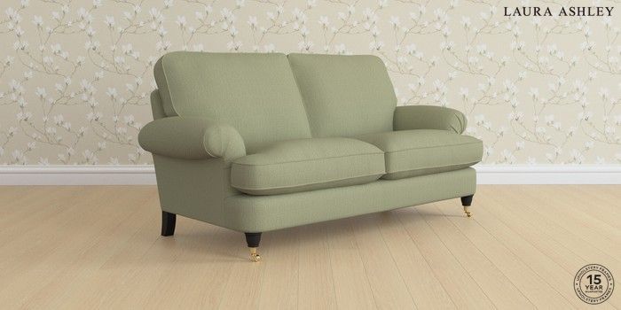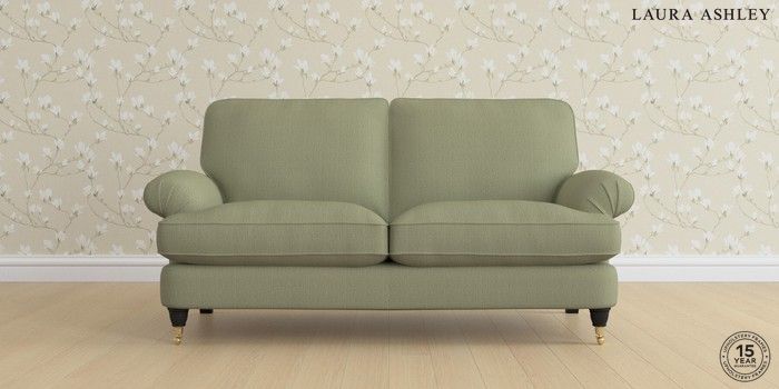 6.12.1 Buy Beaumaris by Laura Ashley 3 Seater Small Sofa Edwin Herringbone Hedgerow Green Low Brass Castor - Black from the Next UK online shop Click here to use our accessible website