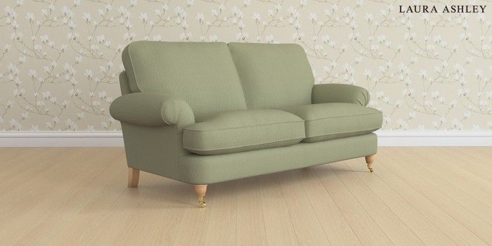 6.12.1 Buy Beaumaris by Laura Ashley 3 Seater Small Sofa Edwin Herringbone Hedgerow Green Low Brass Castor - Light Oak from the Next UK online shop Click here to use our accessible website
