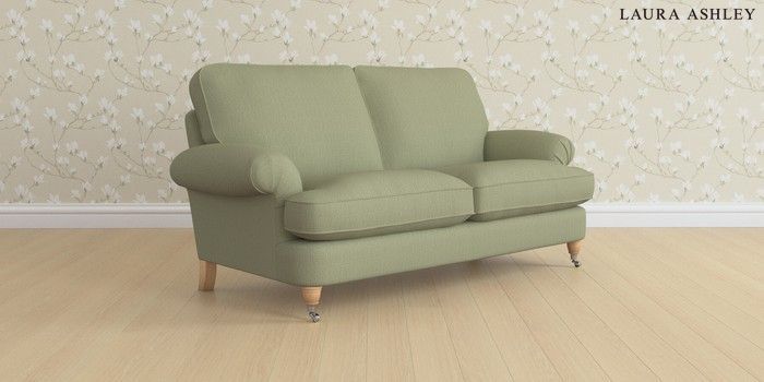 6.12.1 Buy Beaumaris by Laura Ashley 3 Seater Small Sofa Edwin Herringbone Hedgerow Green Low Chrome Castor - Light Oak from the Next UK online shop Click here to use our accessible website