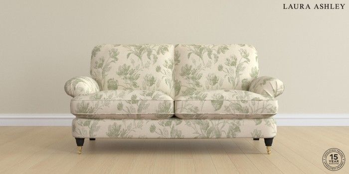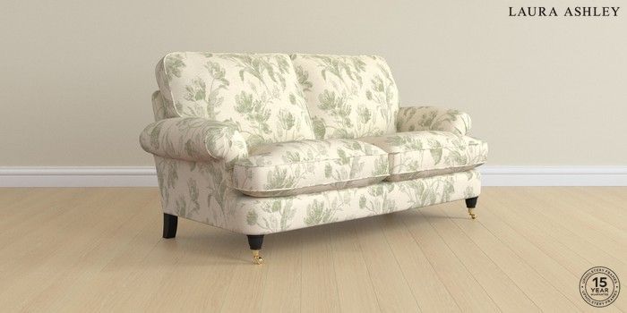 6.12.1 Buy Beaumaris by Laura Ashley 3 Seater Small Sofa Gosford Weave Sage Green Low Brass Castor - Black from the Next UK online shop Click here to use our accessible website
