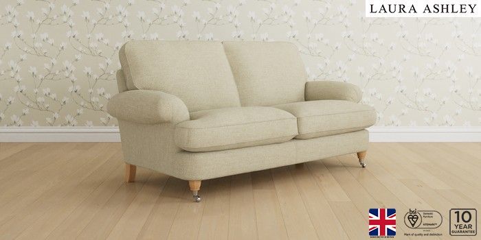 6.11.4 Buy Beaumaris by Laura Ashley 3 Seater Small Sofa Harley Natural Low Chrome Castor - Light Oak from the Next UK online shop Click here to use our accessible website