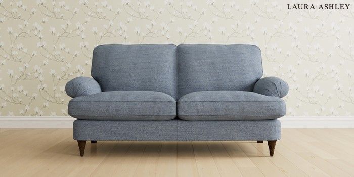 6.12.1 Buy Beaumaris by Laura Ashley 3 Seater Small Sofa Harley Seaspray Blue Low Turned - Chestnut from the Next UK online shop Click here to use our accessible website