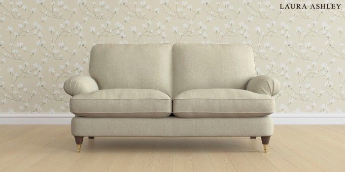6.12.1 Buy Beaumaris by Laura Ashley 3 Seater Small Sofa Kinsham Natural Low Brass Castor - Chestnut from the Next UK online shop Click here to use our accessible website