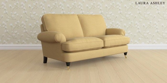 6.12.1 Buy Beaumaris by Laura Ashley 3 Seater Small Sofa Kinsham Ochre Yellow Low Brass Castor - Black from the Next UK online shop Click here to use our accessible website
