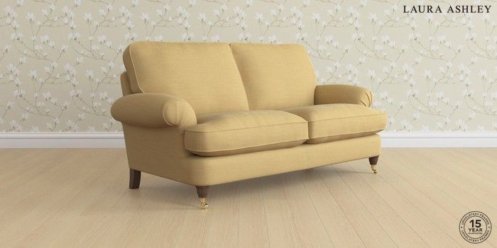 6.12.1 Buy Beaumaris by Laura Ashley 3 Seater Small Sofa Kinsham Ochre Yellow Low Brass Castor - Chestnut from the Next UK online shop Click here to use our accessible website