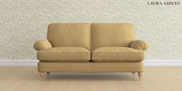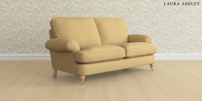 6.12.1 Buy Beaumaris by Laura Ashley 3 Seater Small Sofa Kinsham Ochre Yellow Low Brass Castor - Light Oak from the Next UK online shop Click here to use our accessible website